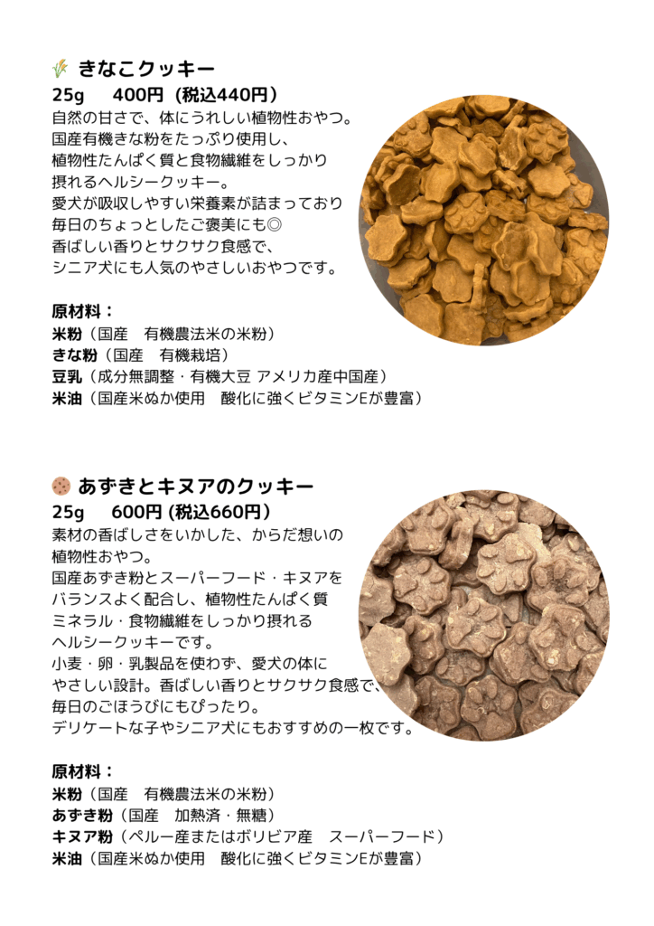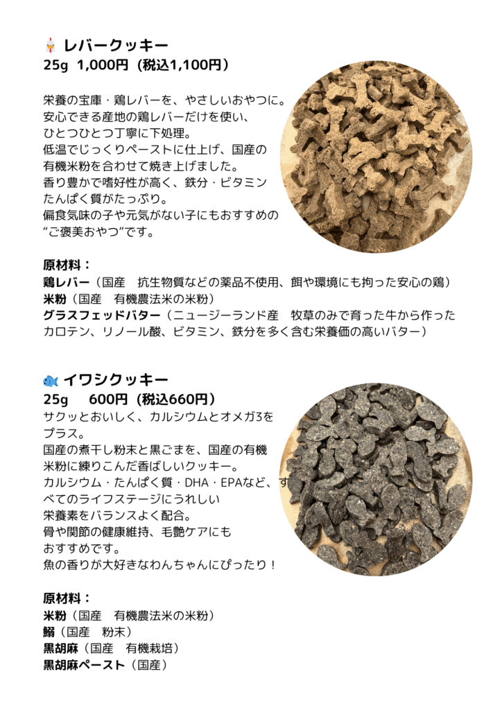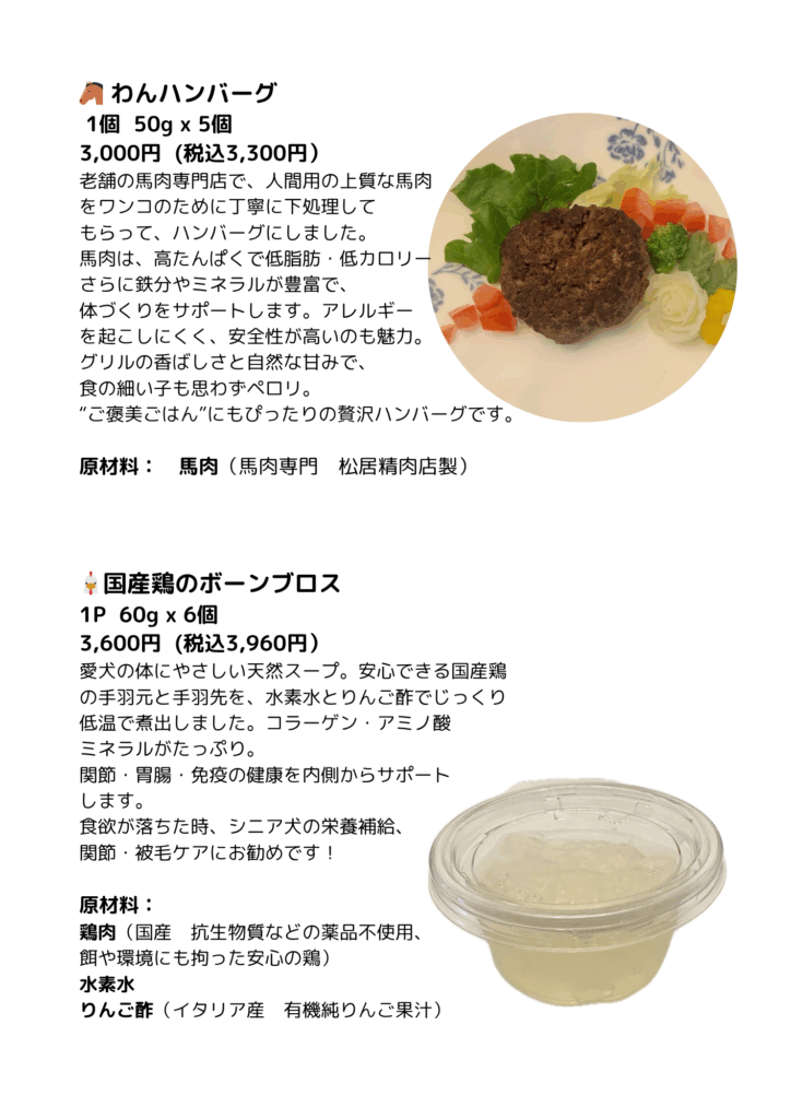 わんこのおやつ メニュー